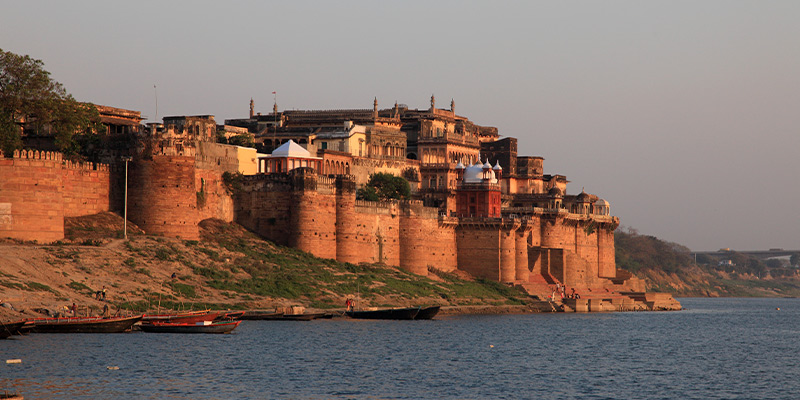 A prime tourist attraction in Varanasi, the Ramnagar Fort is located on the east bank of the Ganges. Built from chunar sandstone and constructed in the Mughal style of architecture, the structure houses Ved Vyasa Temple, the king’s residential complex, and a museum displaying vintage automobiles, weapons, jewel-encrusted chairs, and an astrological clock.