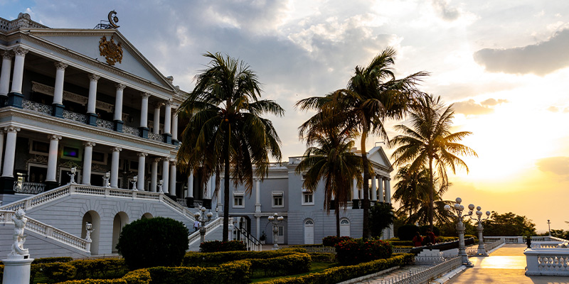 Constructed from Italian marble, the glamorous adobe now operates as a luxurious five-star hotel under the Taj properties and is one of the best palace hotels in India.
