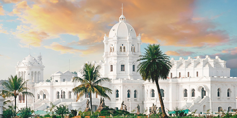 One of the best palaces in the world, situated in Tripura, Ujjayanta Palace was constructed in 1901. It boasts an imposing grand structure, beautiful wooden ceilings, and lovely tile floorings. The palace stands on the banks of two lakes, surrounded by gardens. The former royal palace of the kingdom of Tripura, the castle looks awe-inspiring when lit at night.