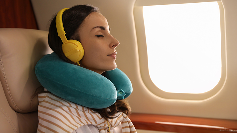 Create your own in-flight sleep kit. Grab earplugs to hush the plane buzz, an eye mask for a lights-out experience, and a plush neck pillow to cosy up your seat. These small things team up to transform your flying spot into a sleep-friendly zone.